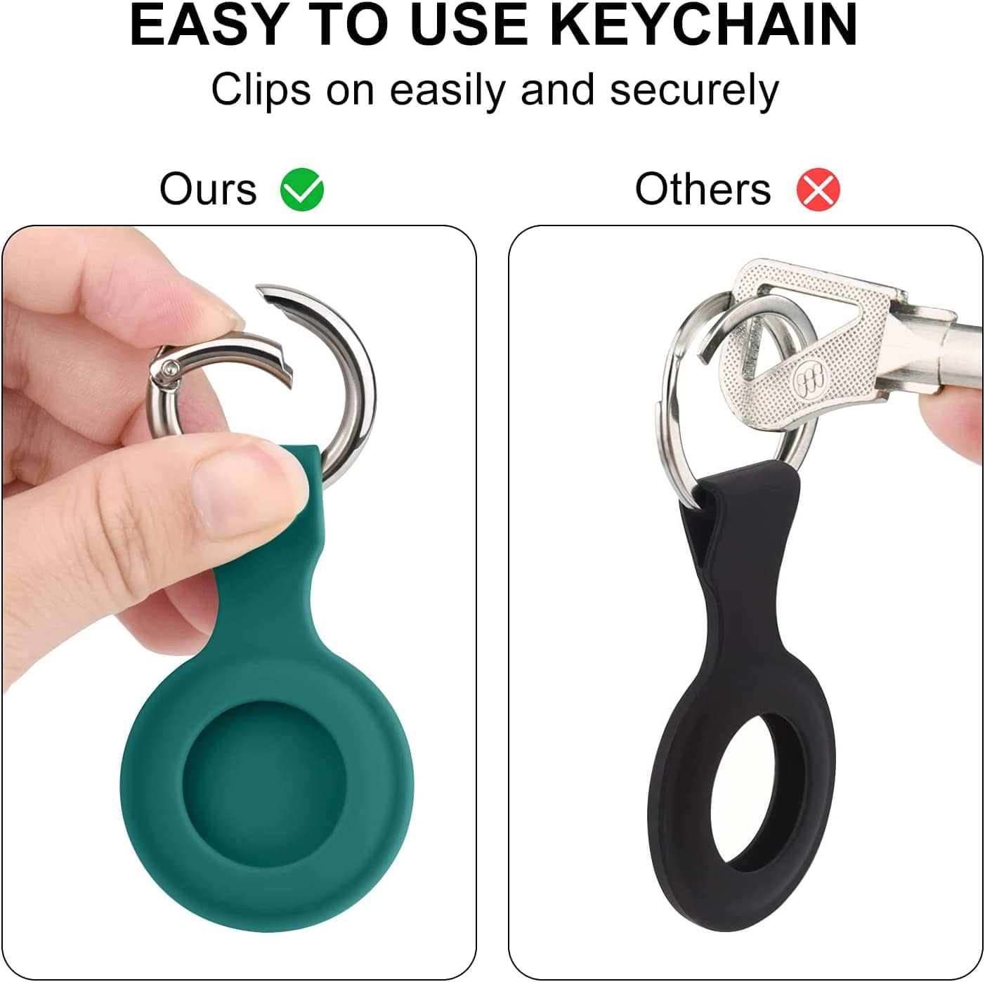 ➤ Lightweight design with a easy lock/unlock spring ring clasp, it can help bind the AirTag with your daily neccesities like keys, car keys, bags, liner bags for tablet or computer, so that items can be trackable.