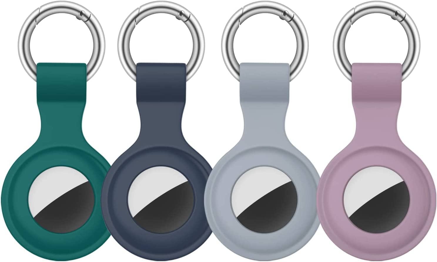 [4 Pack] Airtag Case for Apple AirTags Holder 2021, Keychain AirTags Case with Anti-Lost Key Ring, Soft Silicone Anti-Scratch Lightweight Protective Skin Cover for AirTags Finder Keychain Accessory (Navy Blue+Blue Grey+Purple+Dark Green)