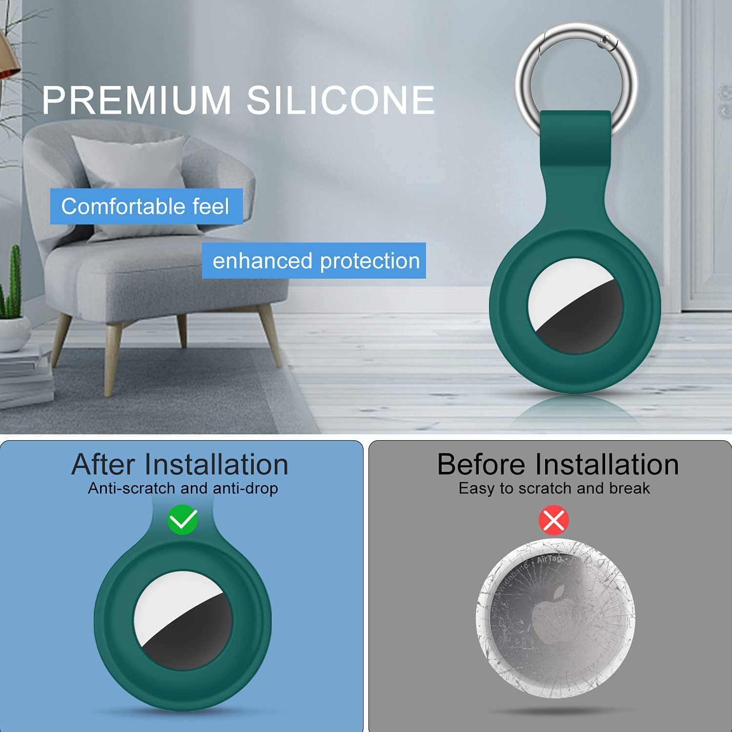 ➤ Simple yet novel design for holding AirTag, quality silicone, sweat-proof, scratch-resistant and durable in use.