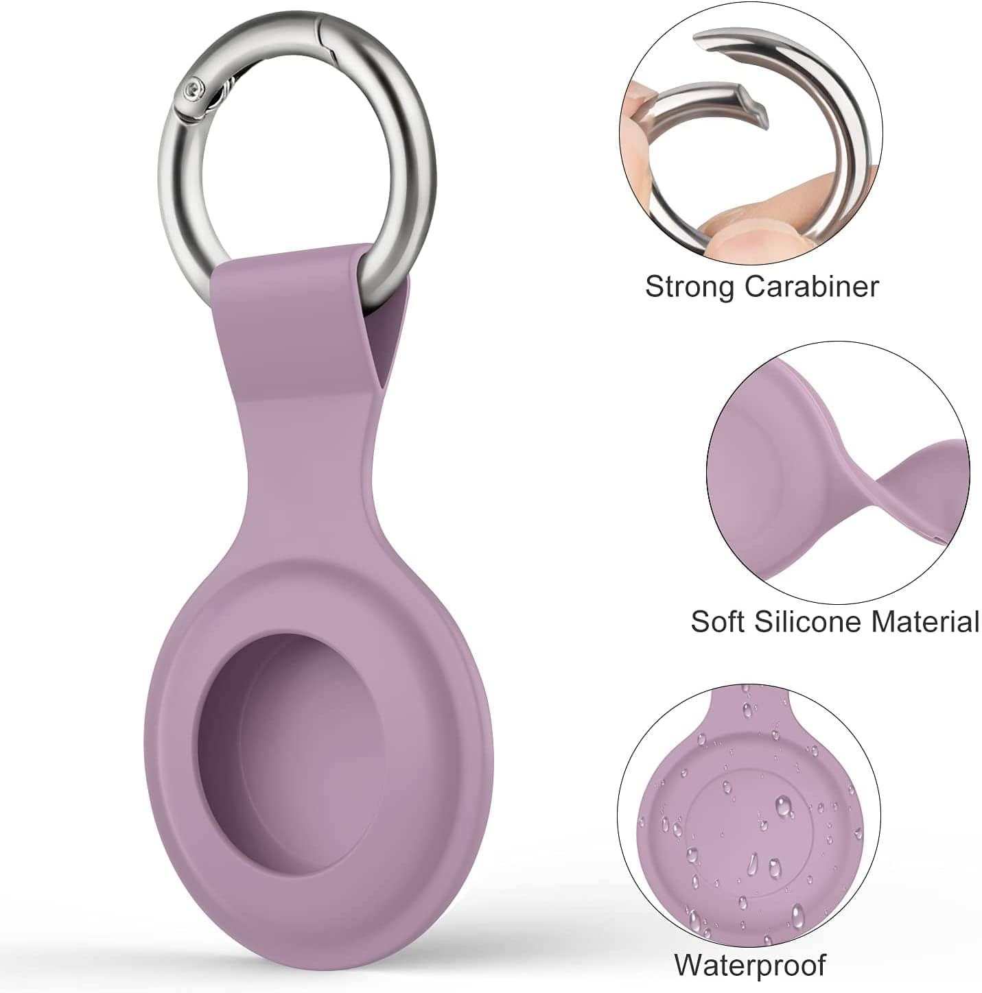 [4 Pack] Airtag Case for Apple AirTags Holder 2021, Keychain AirTags Case with Anti-Lost Key Ring, Soft Silicone Anti-Scratch Lightweight Protective Skin Cover for AirTags Finder Keychain Accessory (Navy Blue+Blue Grey+Purple+Dark Green)